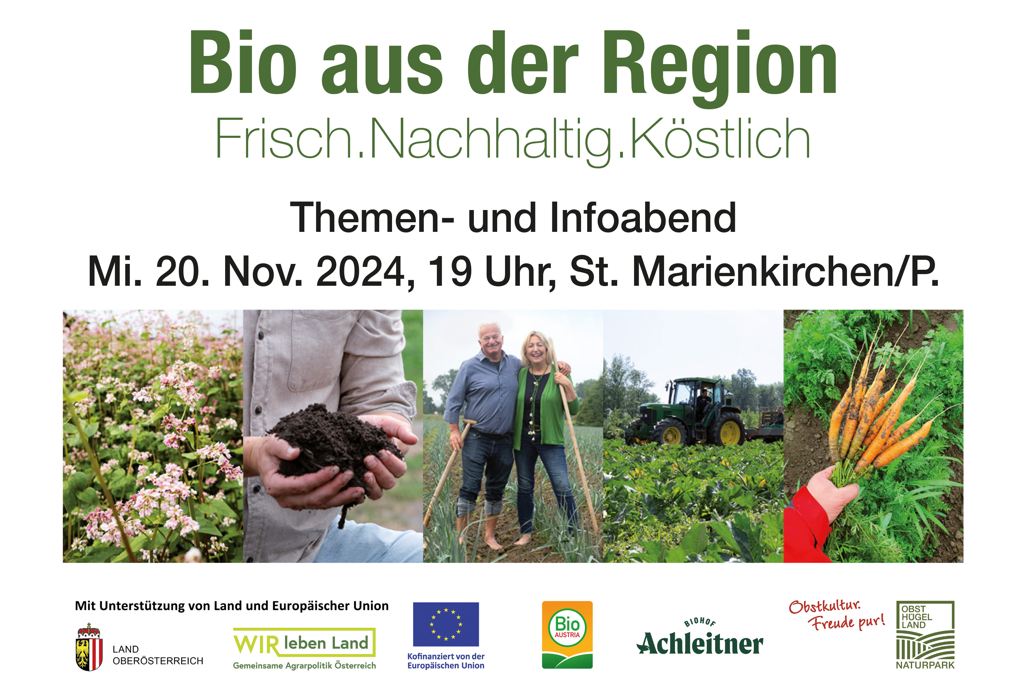 Herzlichen Dank allen interessierten Besuchern, den innovativen Biobäuerinnen und Biobauern und dem Team von BIO Austria Oberösterreich für den gelungenen Bio-Abend im Naturpark Obst-Hügel-Land!