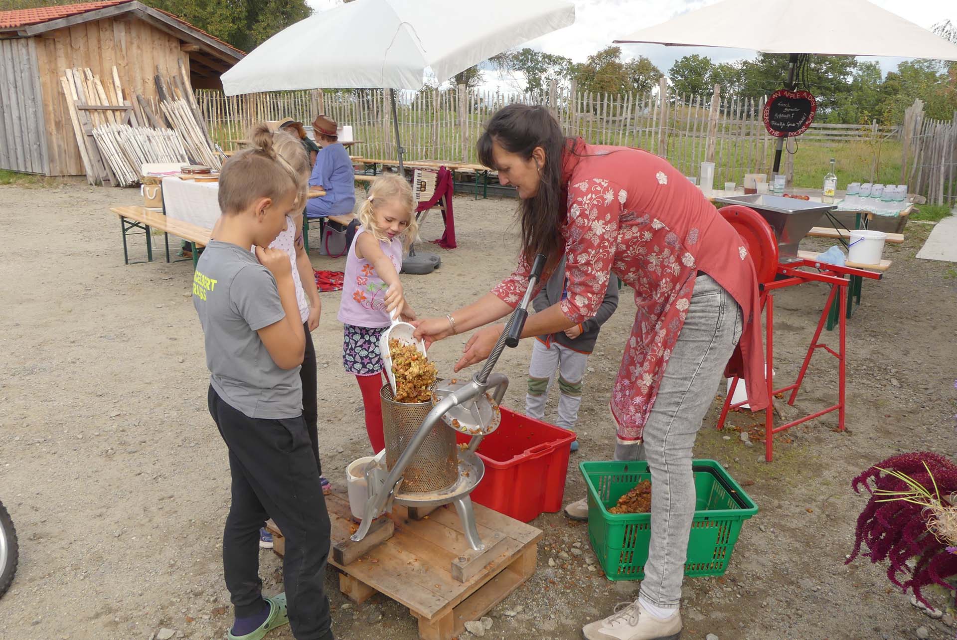 Die Kinder amüsierten sich in der Hüpfburg bei der Familienbund-Station beim Wintersberger und konnten sich dort auch farbenfroh schminken lassen. Beim Stand der Landjugend am Pferdehof von Martina Jungwirth waren neben den Pferden auch Tret-Traktoren im Einsatz. Bei der Naturpark-Erlebnisstation durften sie selbst Apfelsaft pressen und den frisch gepressten Saft natürlich auch gleich verkosten. Wetterhans Gessl unterhielt mit den beiden Musikerinnen Brigitte Gaisböck und Gertraud Mühringer beim "Samareiner Mostbartln" mit einer "klingenden Mostkost".