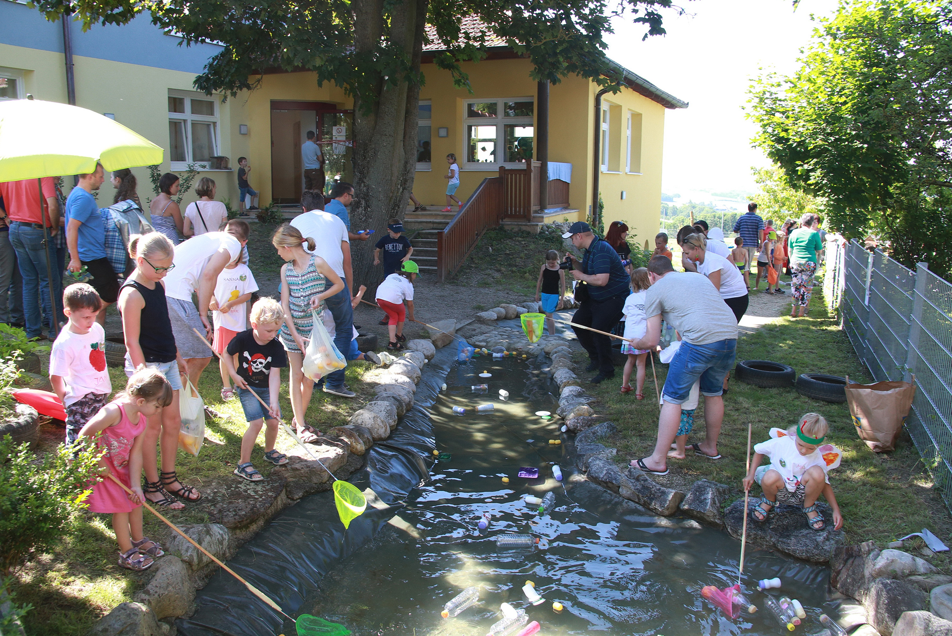 Bild 5: Die beliebteste Station beim Sommerfest war das Spielen am Bach