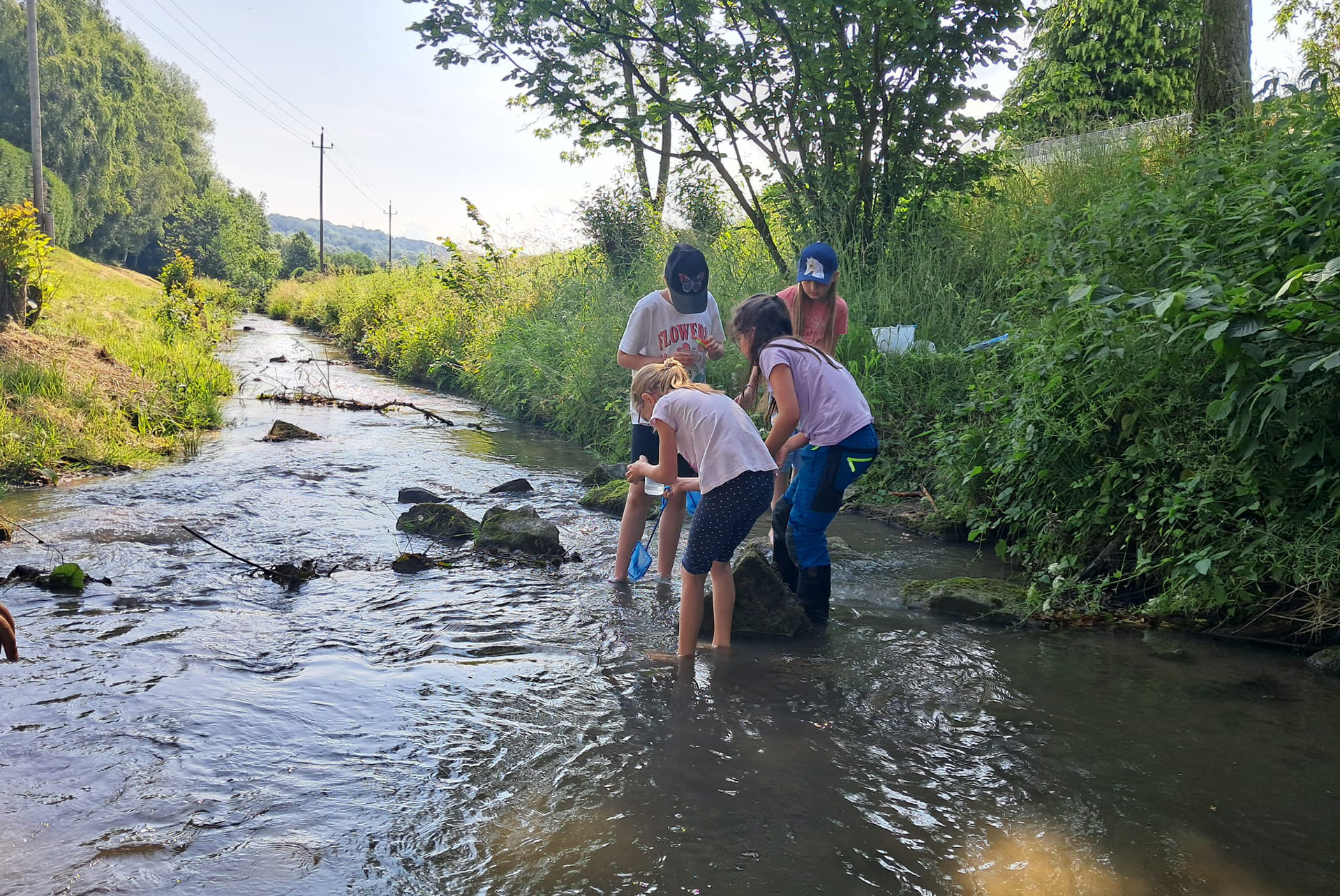 Auf unterschiedliche Art und Weise widmeten sich die Kinder dem Wasser: Die Schüler:innen der VS Scharten sammelten und bestimmten die Wasserlebewesen in einem nahegelegenen Bach. Natur- und Landschaftsvermittler Lukas Briendl vermittelte sehr anschaulich die Lebensweise und den Stellenwert von Bachflohkrebsen, Eintags-, Stein- und Köcherfliegenlarven. Da auch ein Steinkrebs gefunden wurde, konnte gut auf die Besonderheit dieser Krebsart im Unterschied zum Signalkrebs und dessen negativen Einfluss auf heimische Gewässer eingegangen werden. Darüber hinaus wurde auch noch ein Biberdamm besichtigt und gemeinsam die biologischen Merkmale und Besonderheiten des Bibers seiner Lebensweise und den Einfluss auf heimische Ökosysteme erarbeitet.