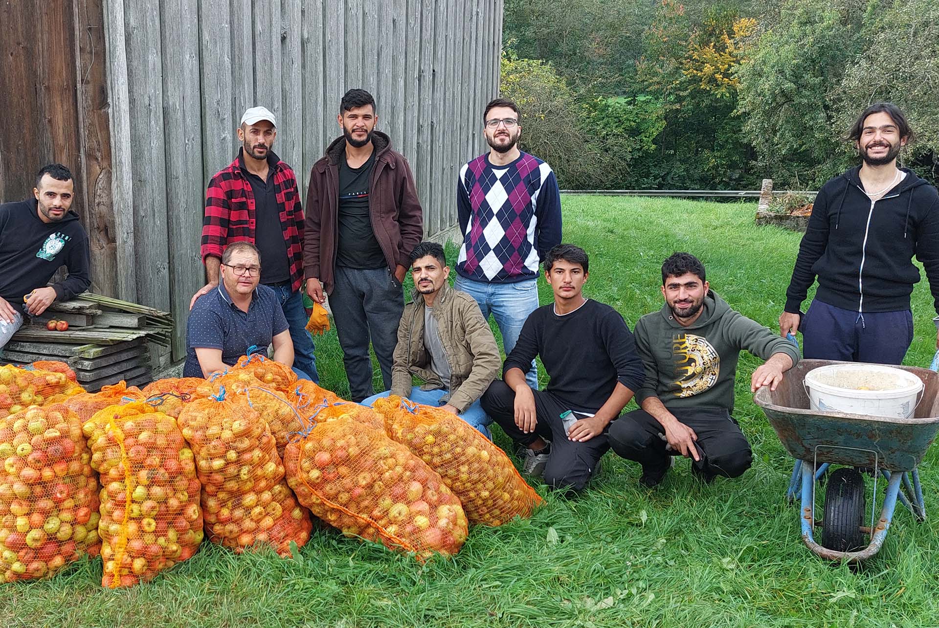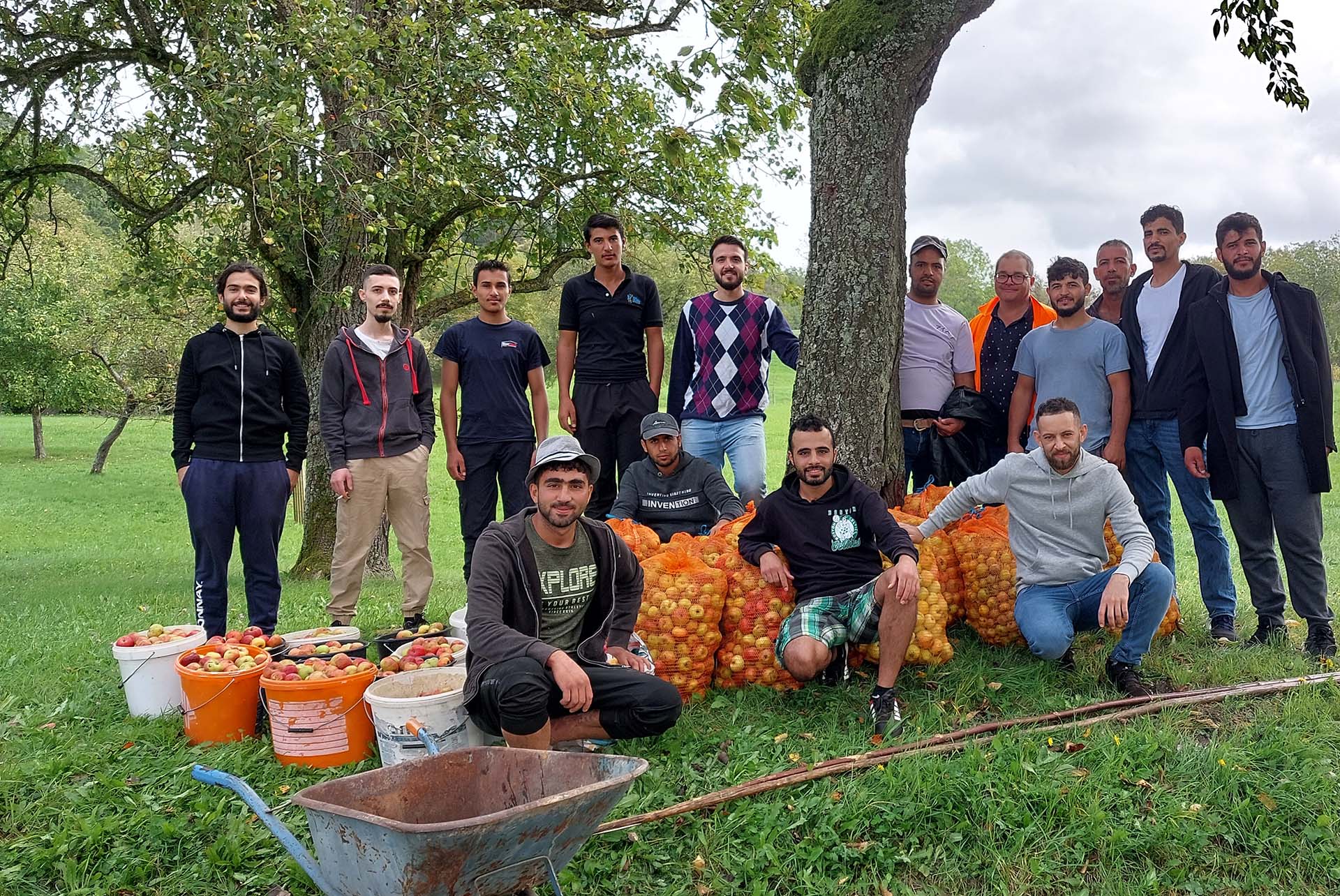 Die Idee: Geflüchtete sammeln gemeinsam mit Projektbetreuern Äpfel und Birnen, die ansonsten liegen blieben und verfaulen würden. Das Mostobst wird an Verarbeiter verkauft, mit dem Erlös ein soziales Projekt unterstützt, konkret der Sozialmarkt des Roten Kreuzes Eferding. Heuer beteiligten sich 14 Freiwillige an zwei Aktionstagen und klaubten rund 1.300 kg Äpfel und Birnen.