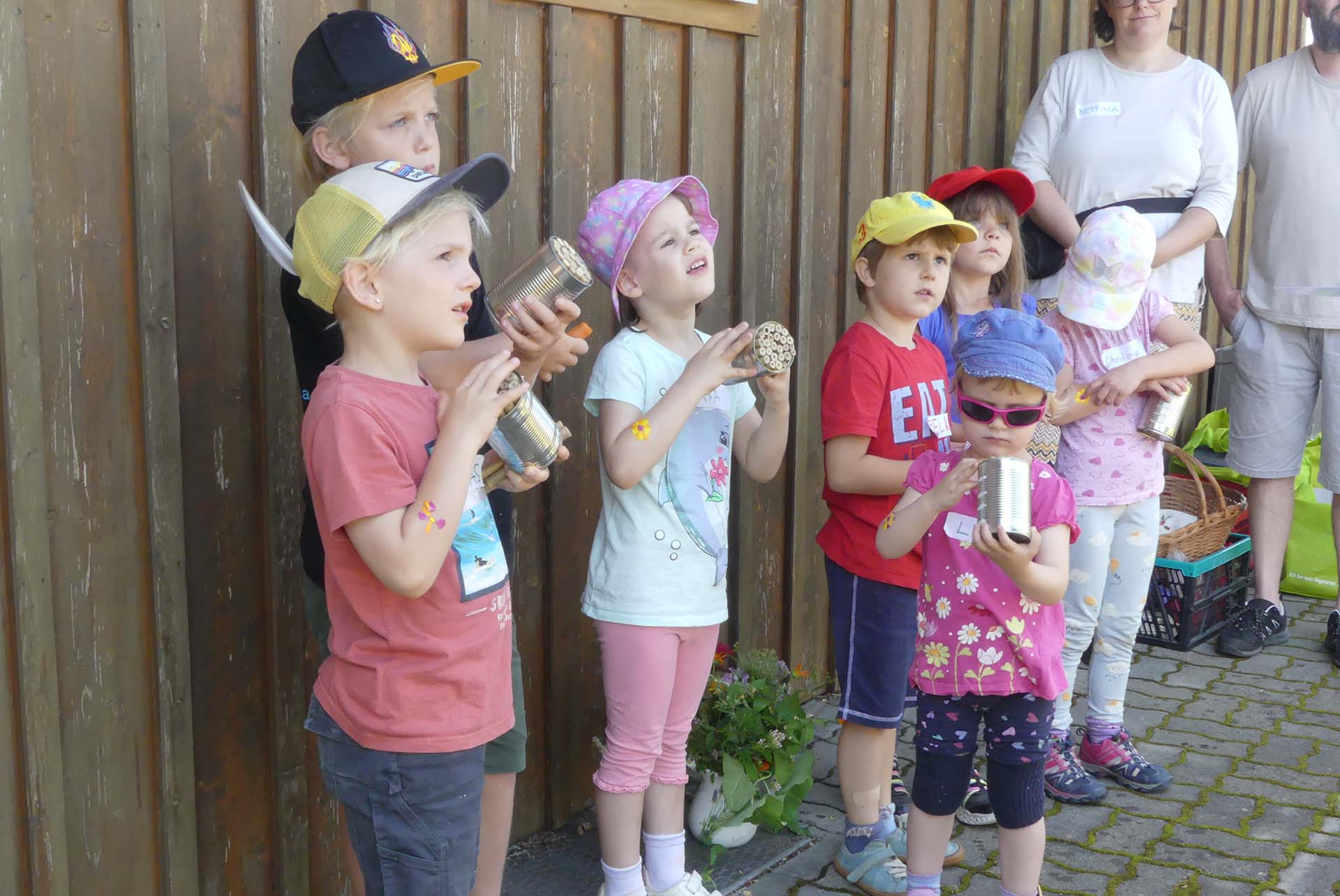Besonders beliebt waren die Naturerlebnis-Stationen im Wald und entlang bzw. auch in der Polsenz. Die Familien lernten über Insekten und Pflanzen in Streuobstwiesen, bereiteten einen Wildkräuteraufstrich zu und basteln Nisthilfen für Wildbienen.