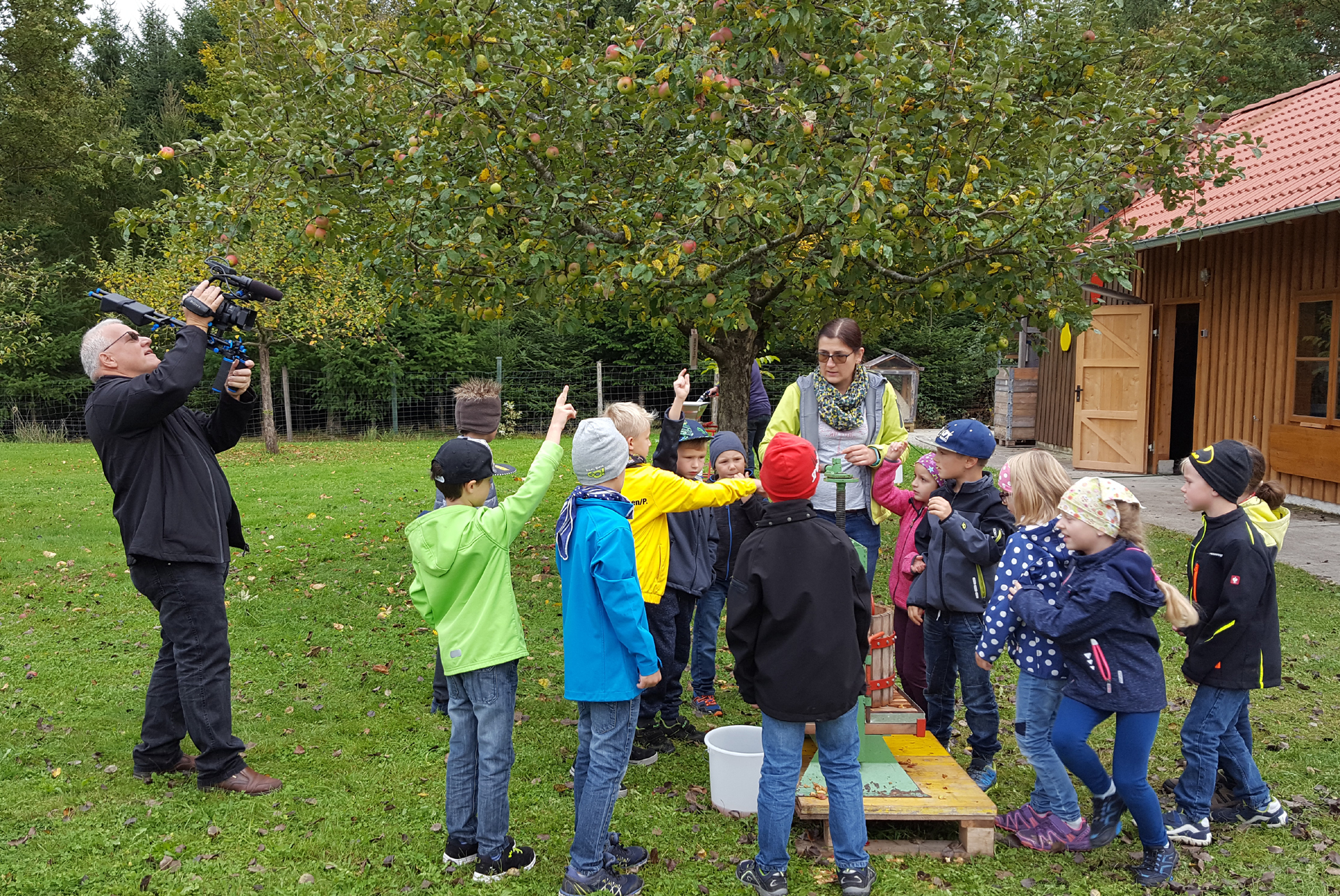 Ein Team von HT1 begleitete die Schülerinnen und Schüler der 2. Klasse der Samareiner Volksschule bei der Naturerlebnisführung „Von der Blüte zur Frucht – Streuobstwiesen im Frühsommer und Herbst".