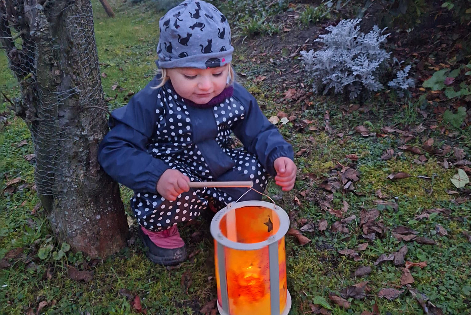 Am Spaziergang zum Innbach schmücken wir die Bäume mit Blätterketten und jedes Kind darf sich einen Wunsch-Kranz aus Naturmaterialien binden, welcher dann dem Innbach feierlich übergeben wird. Von unseren hellen Windlicht-Strahlen begleitet kehren wir wieder zurück und entzünden ein kleines Feuer im Korb, um den Nachmittag bei warmem Apfelpunsch ausklingen zu lassen.