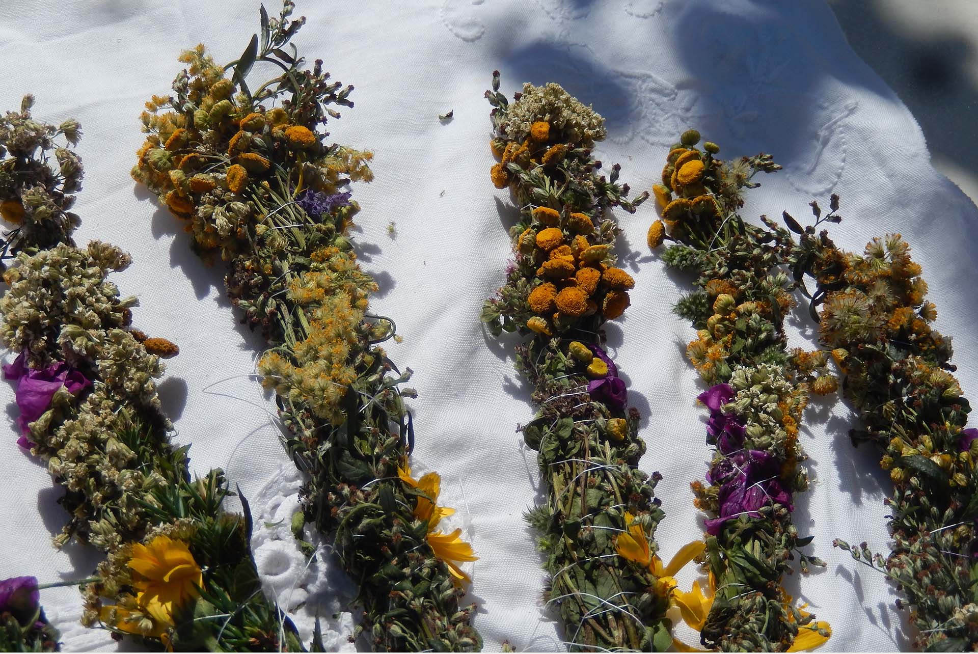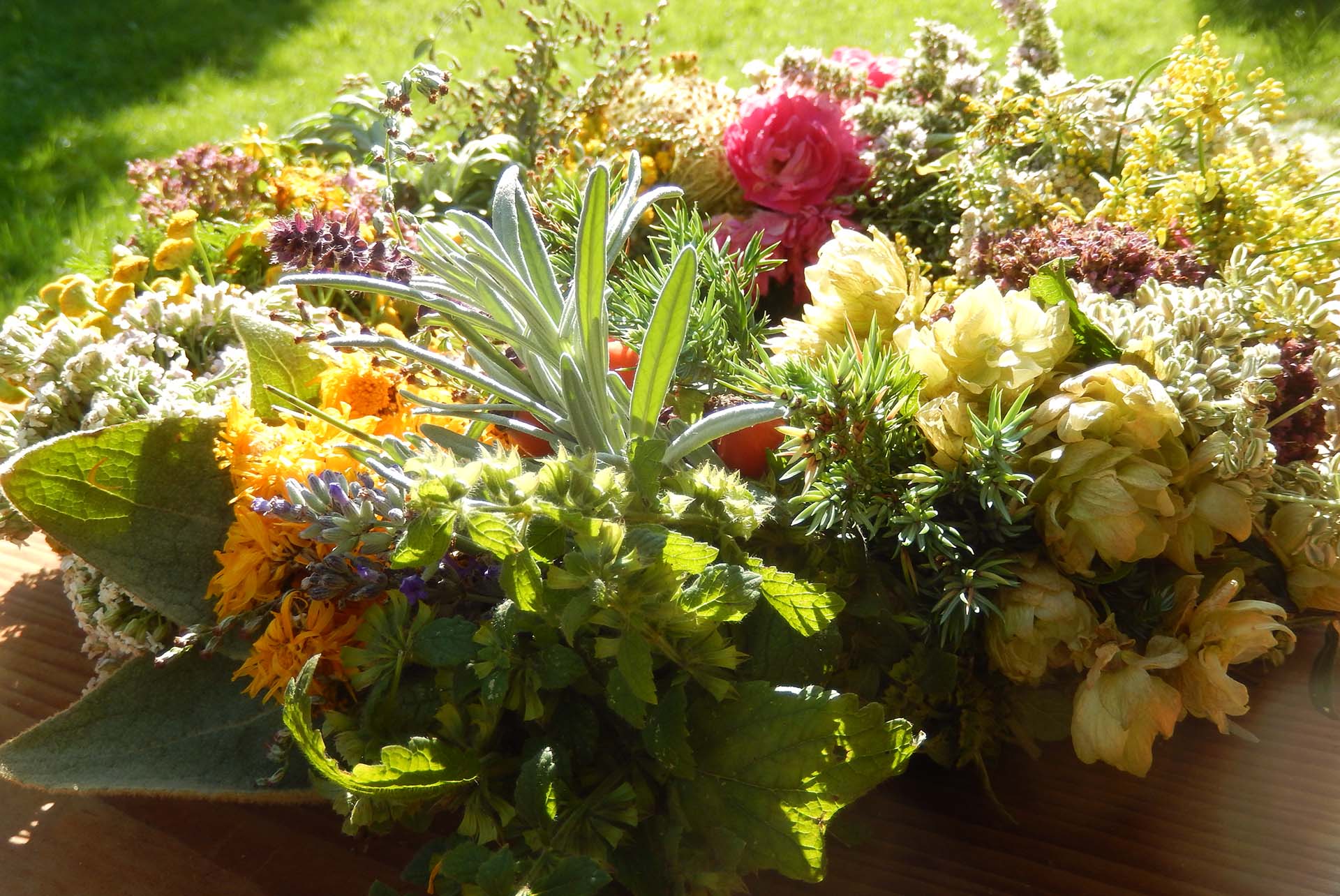 Um wichtigen Festen im Jahreslauf eine besondere Note zu verleihen, räuchern wir mit Blüten Harzen und duftenden Sommerkräutern. Dieses Ritual reinigt unsere Wohnungen, wirkt inspirierend und schafft Harmonie. Zu Lichtmess, Walpurgis, den Sonnenwendfesten, im Advent, in den Raunächten dürfen würzige Kräuterdüfte nicht fehlen. Sie können sich auch ein eigenes Kräuterbüscherl binden.