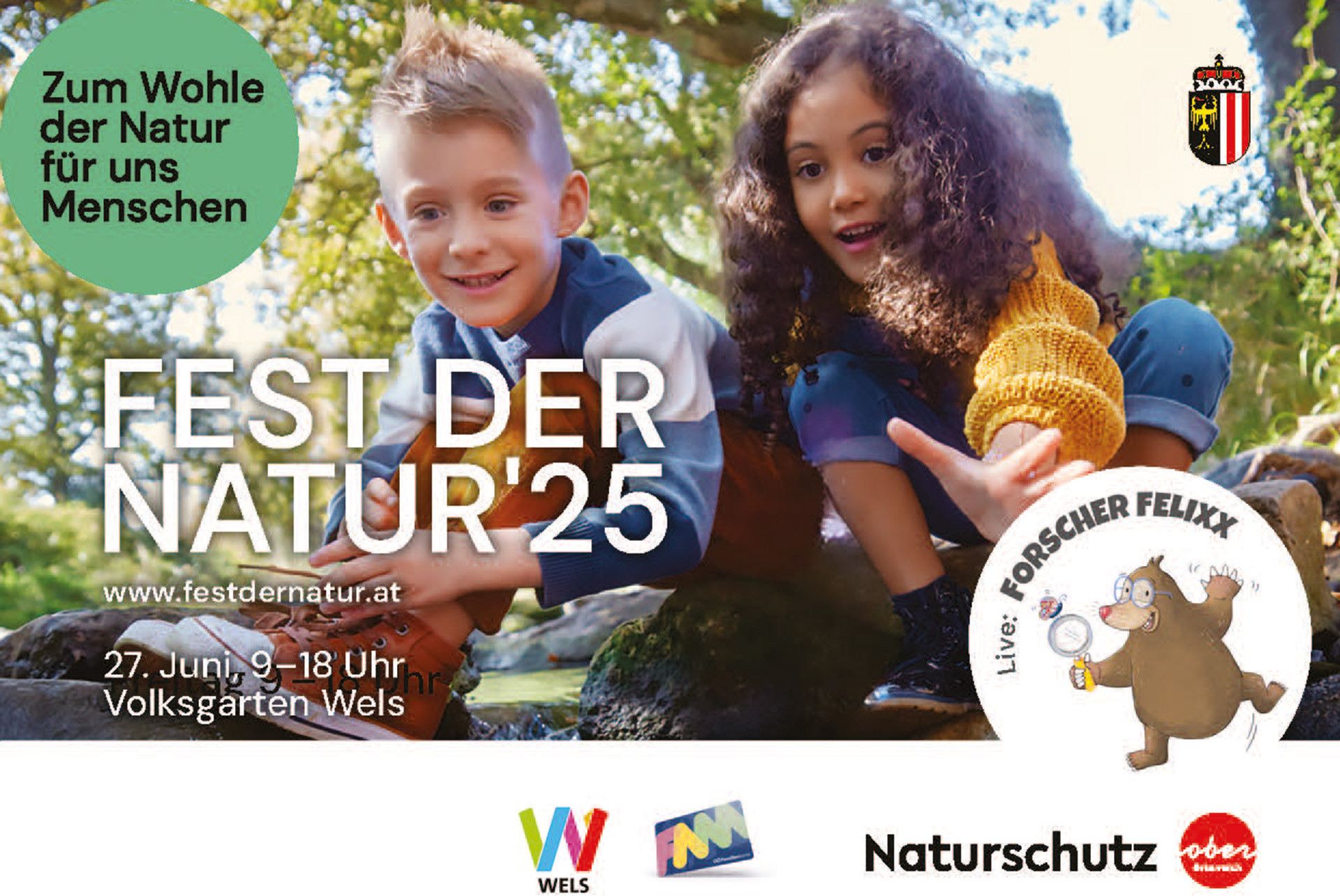 Am Freitag, 27. Juni findet das FEST DER NATUR im Volksgarten Wels statt und informiert Groß und Klein unterhaltsam über den heimischen Naturschutz, die Aufgaben und Herausforderungen und was wir alle dazu beitragen können.