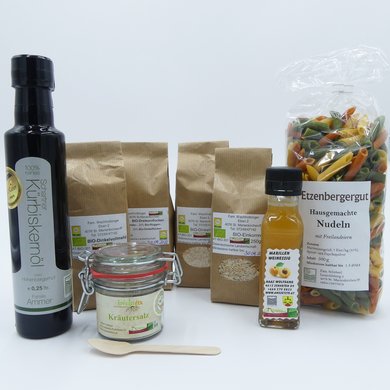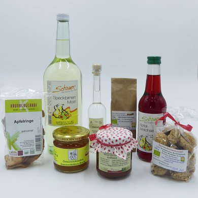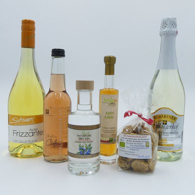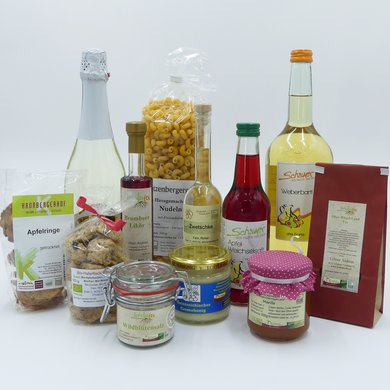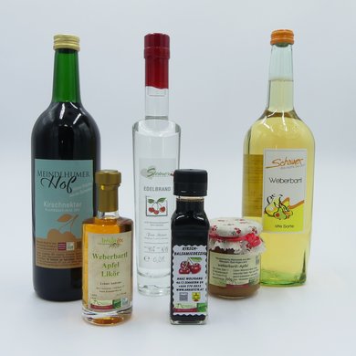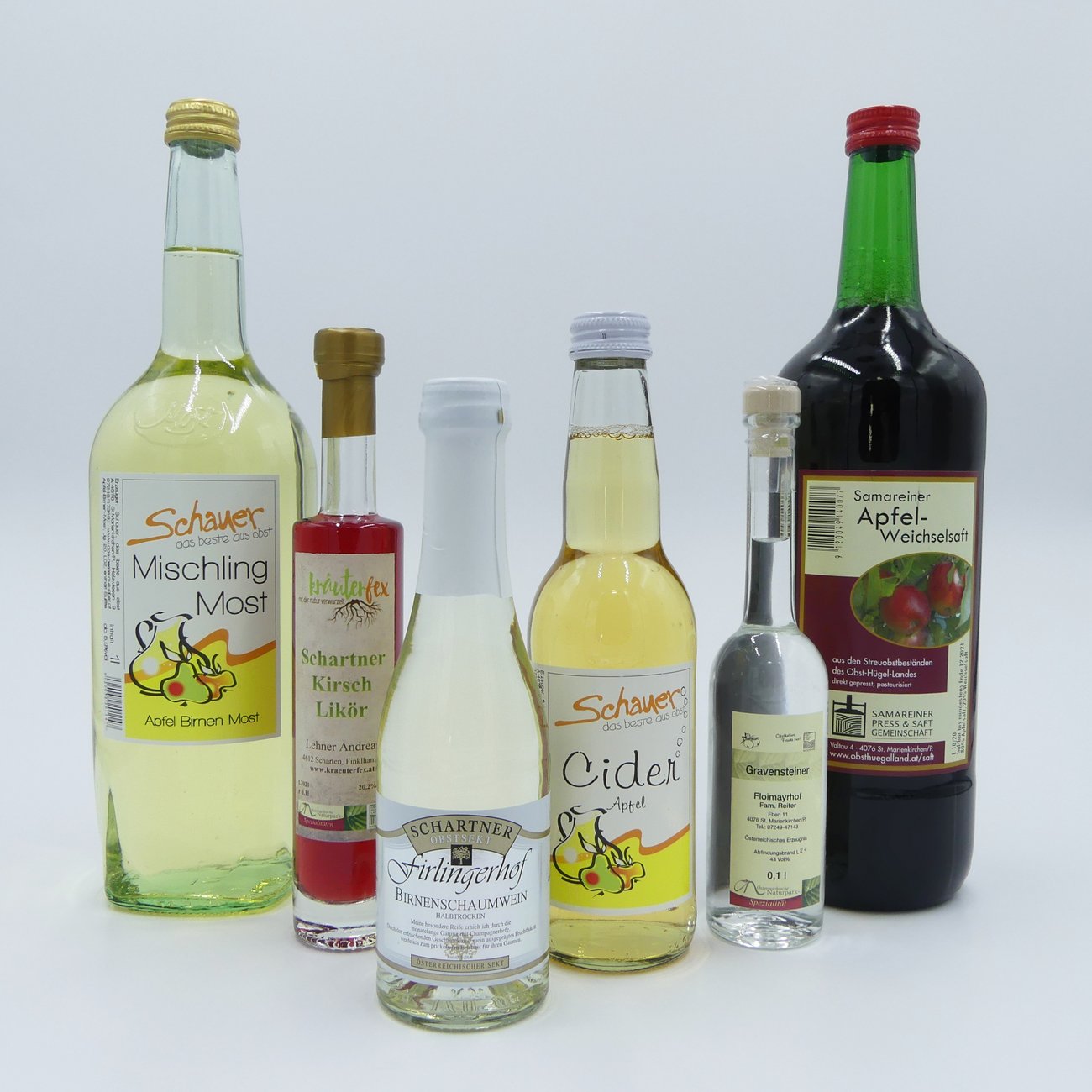 Unsere Geschenkpakete und -körbe erfreuen sich ständig steigender Beliebtheit und auch die Produktvielfalt nimmt laufend zu. So erweiterte sich das klassische Sortiment wie Most, Obstsäfte und -nektare, Edelbrände, Honig, Marmeladen, Getreideprodukte etc. um verschiedenste Kräuterliköre, Gin, Kräutersalze, Frizzante, Nudeln, Apfelringe, unterschiedliche Essig- und Ölsorten sowie Tee und Kirschensenf.
