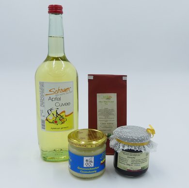 Wir bieten Ihnen verschiedene Standard-Geschenkarrangements in unterschiedlichen Preisklassen an. Gerne können Sie zu uns ins Naturpark-Büro kommen und sich Geschenkpakete und -körbe nach Ihren persönlichen Vorlieben zusammenstellen lassen.