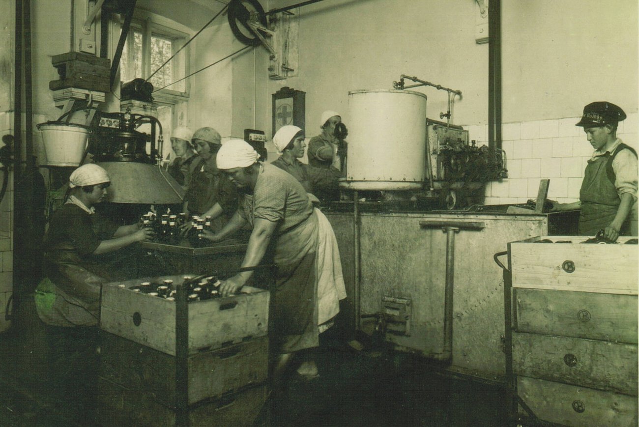Erstmals um das Jahr 1926 hatte Herr Otto Burger aus Linz im Hoftrakt des Elternhauses eine Getränkeproduktion etabliert. Er war der erste Hersteller der „Schartner Bombe“. Im Dezember 1927 wurde die „Schartner Bombe“ als geschützte Markenbezeichnung ins Handelsregister eingetragen. Die ersten Flaschen hatten tatsächlich die Form einer Bombe. Einige dieser gläsernen, graugrünlichen Bomben haben sich bis heute erhalten. Abgefüllt wurden sie im Presshaus des Schatzmeir-Hofes in Leppersdorf. Fünf ArbeiterInnen bedienten eine halbautomatische Anlage und befüllten 600 Flaschen in der Stunde.