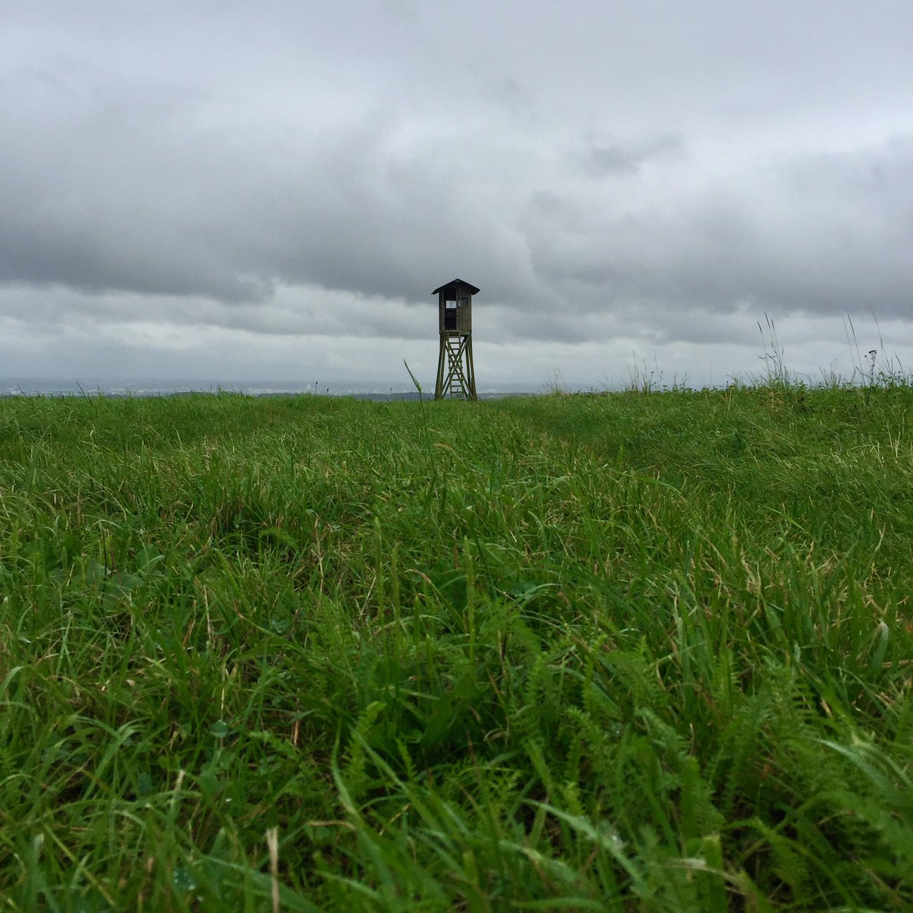 Ein idyllischer Weg mit urigen Mostbirnbäumen zu beiden Seiten belohnt mit einem Hochsitz von unglaublicher Panoramaweite nach kurzer Wegstrecke.