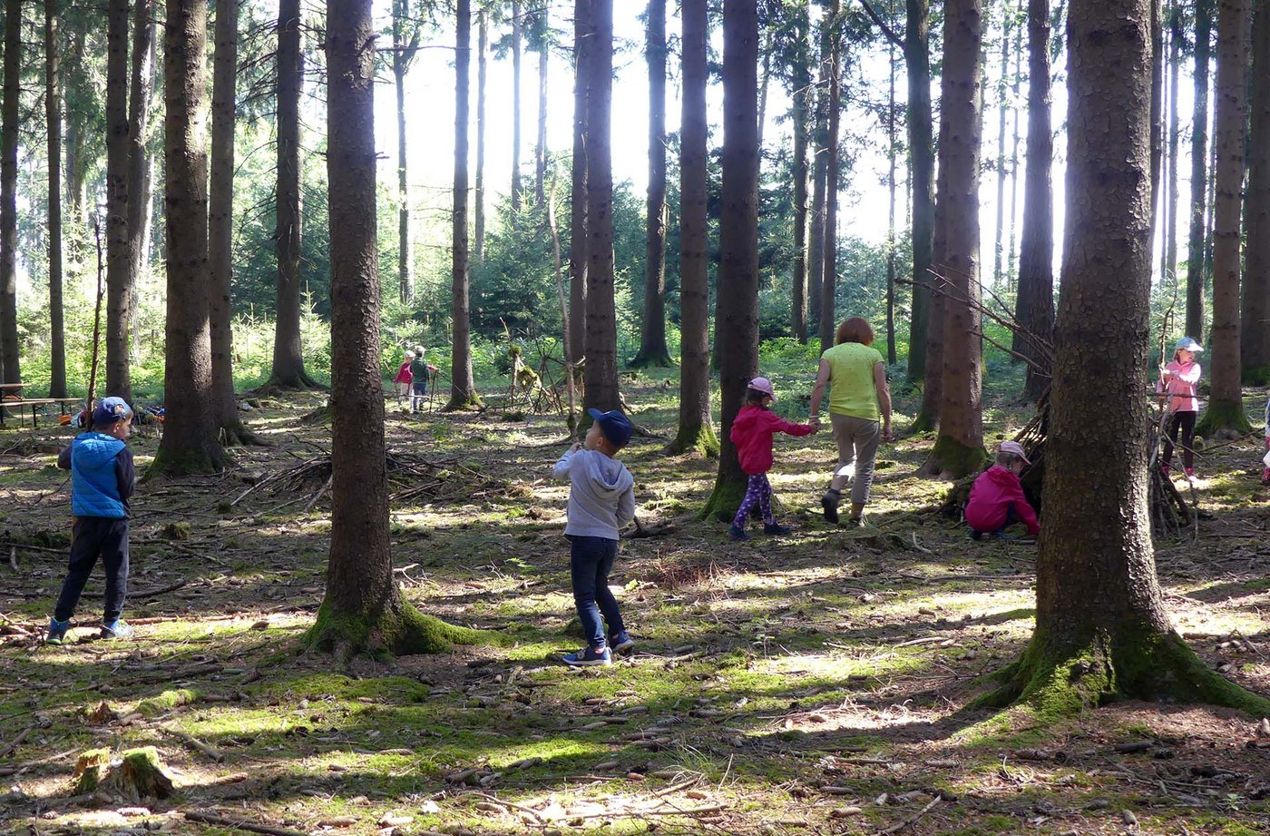 Wir bauen und besprechen phantasievolle Vogelnester, suchen und bemalen Waldzwerge, ertasten Bäume blind, basteln Panflöten und lassen sie tönen uvam. Wir erforschen, welche Tiere und Pflanzen im Wald leben und staunen über die Vielfalt.