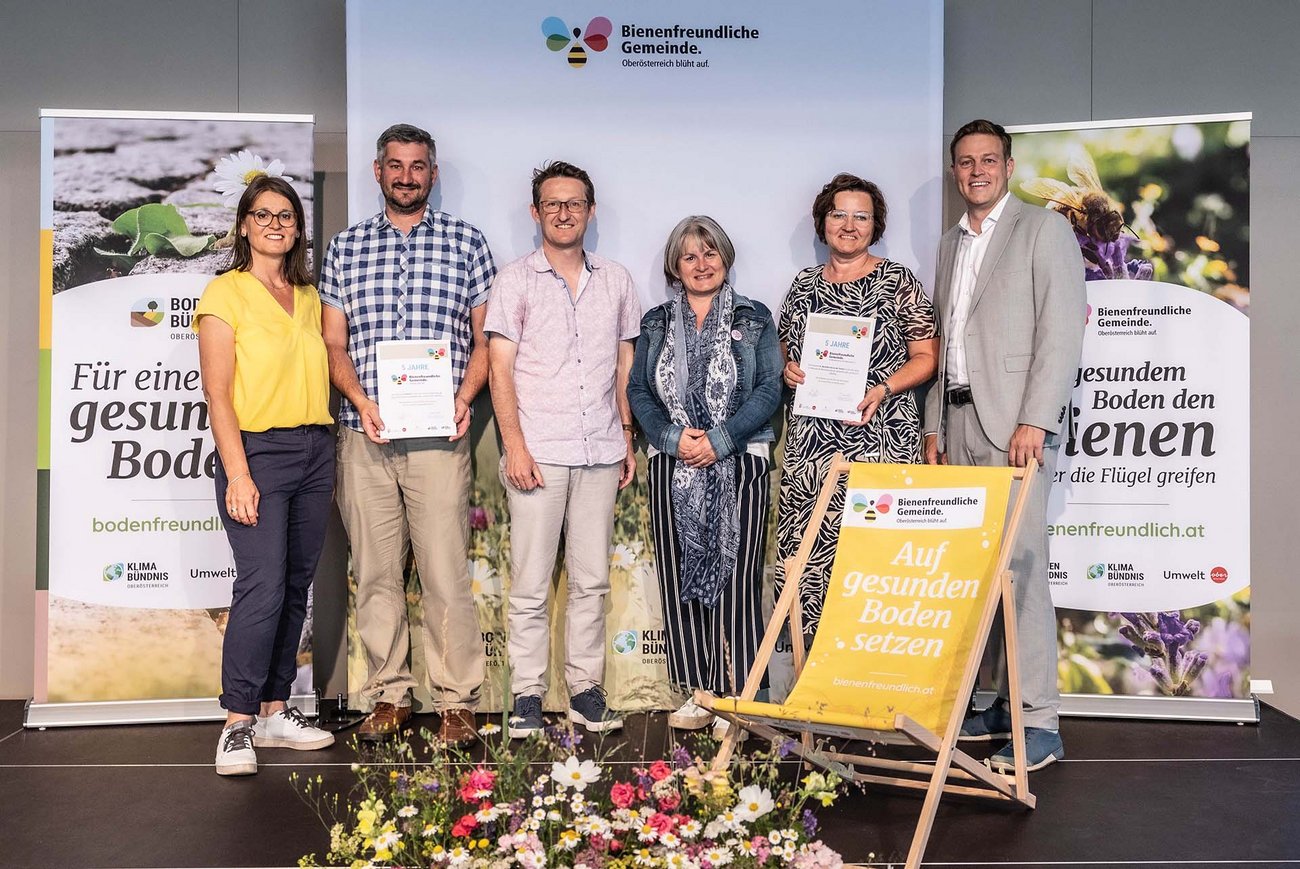 Die beiden Naturparkgemeinden Scharten und St. Marienkirchen/Polsenz wurden am Dienstag, den 2. Juli 2019 vom damaligen Umwelt-Landesrat Rudi Anschober im Biologie-Zentrum Linz als „Bienenfreundlichen Gemeinden“ ausgezeichnet. Diese Gemeinden setzen sich im Rahmen des Projektes aktiv für Bienenschutz und Artenvielfalt ein. Sie verzichten mit Unterstützung des Bodenbündnis OÖ auf Pflanzenschutzmittel auf öffentlichen Grünflächen, bepflanzen diese bienenfreundlich oder laden die Bevölkerung ein, auch ihre Hausgärten in kleine Oasen für Insekten zu verwandeln. Allein die ersten 12 Gemeinden haben innerhalb der ersten zwei Jahre – neben zahlreichen Aktionen - 10.000 m² Bienenweide und über 13 Hektar Wiesen auf extensive Nutzung umgestellt. Noch vor der feierlichen Auszeichnung wurde an diesem Abend zu einem beeindruckenden Wildbienen-Rundgang durch den Ökopark sowie einer Vorstellung der weltweit bedeutenden Wildbienen-Sammlung mit den Experten Mag. Fritz Gusenleitner, Dr. Martin Schwarz sowie Univ.-Doz. DI Dr. Martin Pfosser geladen.