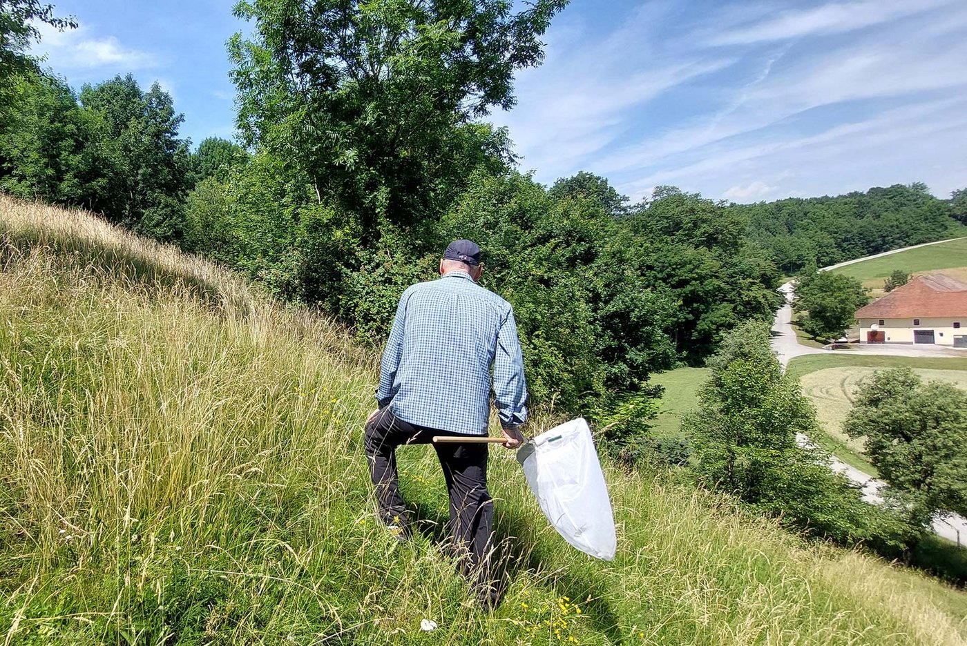 Die Erhebung im Obst-Hügel-Land soll dazu beitragen, diese Wissenslücke zu verkleinern. In Verbindung mit den Ergebnissen der Tagfalter- und Wildbienen-Kartierungen im Naturparkgebiet lassen sich wertvolle Aussagen über mögliche Managementmaßnahmen auf bestimmten Flächen treffen. Die Erhebung erfolgte in den Jahren 2024 und 2025 auf insgesamt 6 Flächen mittels Sichtfang. Dabei wurde jede Fläche für zwei Stunden mit standardisierter Methodik untersucht. Da einzelne Arten nur zu einer bestimmten Zeit im Jahr aufgefunden werden können, waren vier Begehungen jährlich notwendig. Die zweijährige Laufzeit sollte umweltbedingte Schwankungen bei Insektenpopulationen ausgleichen.